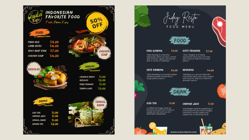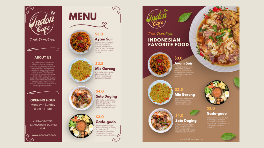 - Customize: Use Canva’s user-friendly tools to personalize the menus to your preferences.